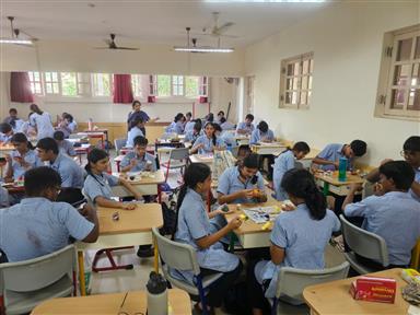 The students of the Interact Club of Sharada Mandir School showcase. . .